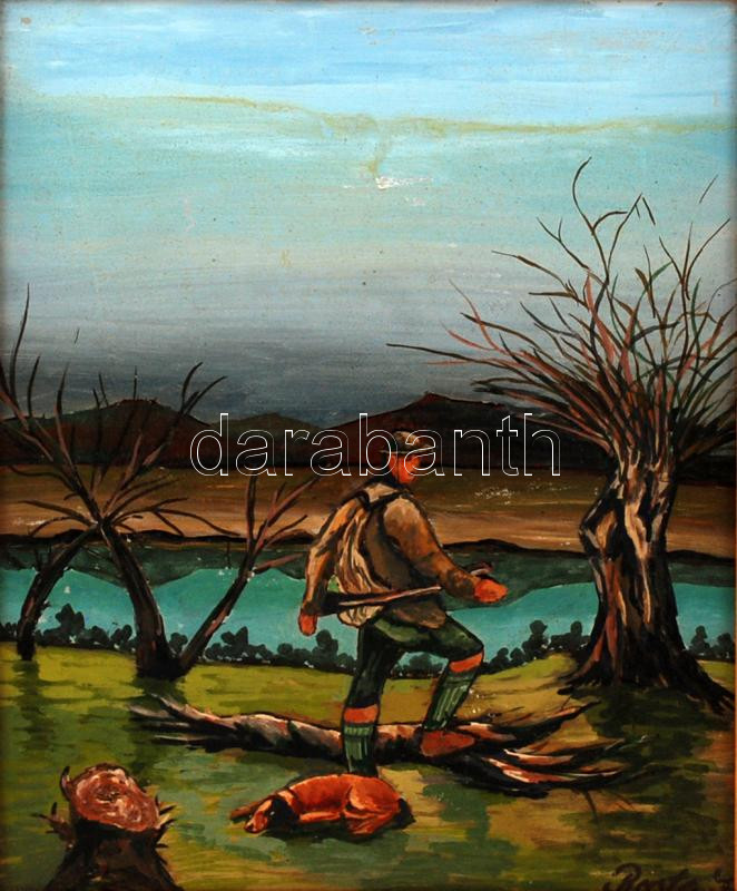 Beschreibung: Rosta jelzéssel: olaj, fa, keretben, 31,5×26 cm