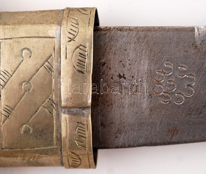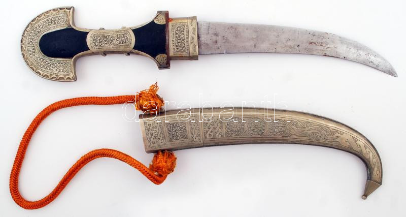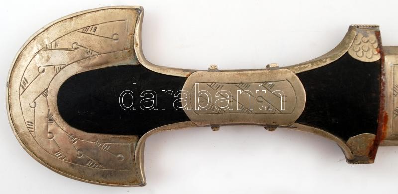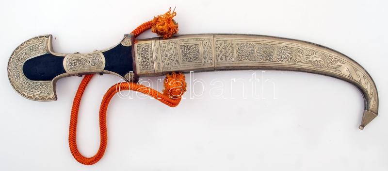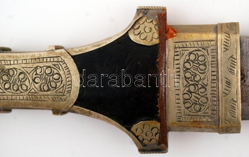 Gazdagon díszített keleti motívumos dísztőr, fa markolattal, díszes hüvellyel, pengehossz: 22,5 cm, 43 cm /