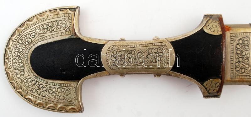 Richly ornated oriental-style honorary dagger, with wooden hilt and ornated scabbard, blade length: 22,5 cm, total length: 43 cm