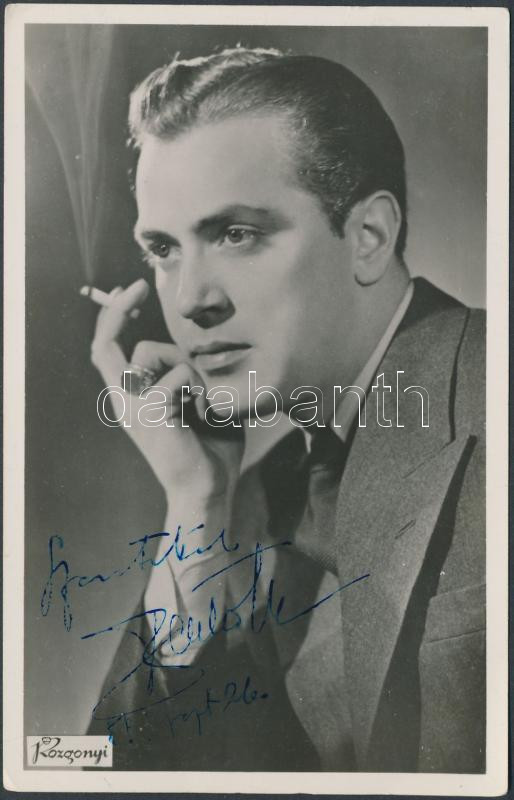 Beschreibung: Benkő Gyula (1918-1997) színész aláírása őt ábrázoló fotólapon