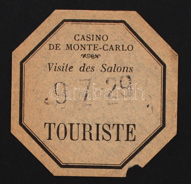 Monte Carlo Casino jegy turistának, kis hibával, d:8cm https://www.darabanth.com/de/235-Fernauktion/235.0/Andere-Sammelgebiete/Werbungen~400038/Monte-Carlo-Casino-jegy-turistanak-kis-hibaval-d8cm~II1072111
