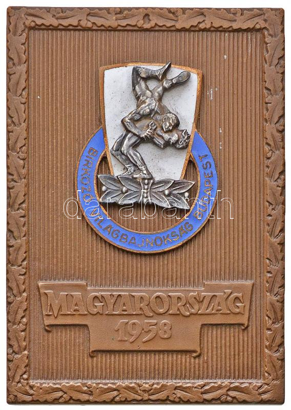 1958. "Birkózó Világbajnokság Budapest" zománcozott Br plakett (80x56m... https://www.darabanth.com/de/235-Fernauktion/235.0/Numismatik/Faleristik-Auszeichnungen-Medaillen-Ordnen~19/1958-Birkozo-Vilagbajnoksag-Budapest-zomancozott-Br-plakett-80x56mm-T2~II1073933