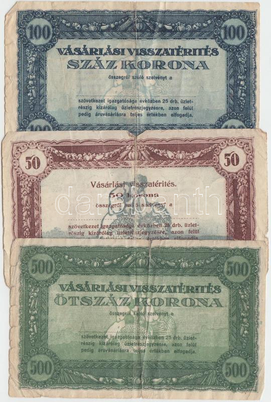 Beschreibung: ~1920. 50K + 100K + 500K "Vásárlási Visszatérítés" kitöltetlenek T:III,III-