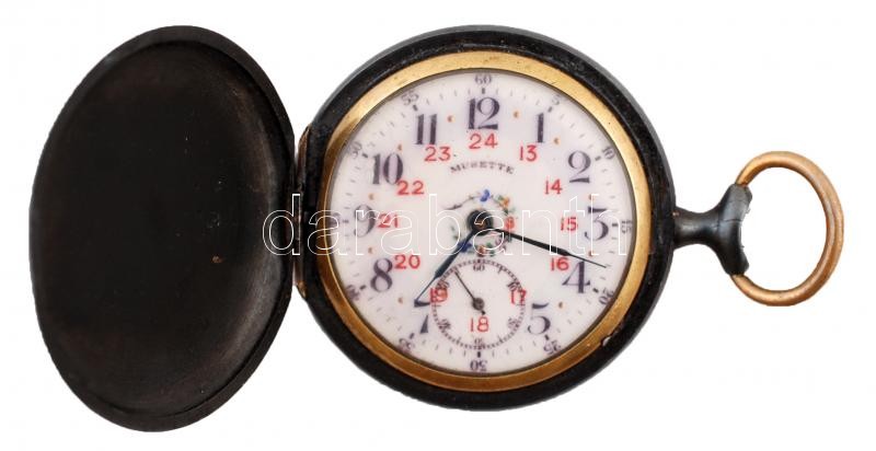 Beschreibung: Díszes számlapú Musette zsebóra, működik