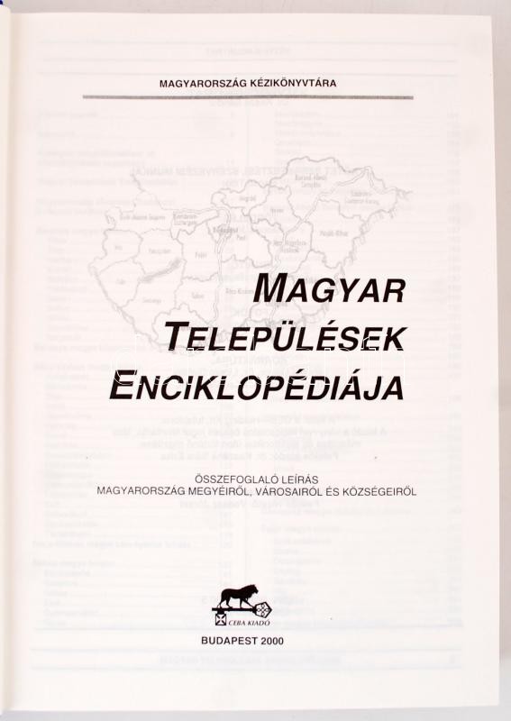Magyar Települések Enciklopédiája. Összefoglaló leírás Magyarország megyéiről, városairól és községeiről. Magyarország Kézikönyvtára. Budapest, 2000, Ceba. KIadói karton kötésben. Jó állapotban.