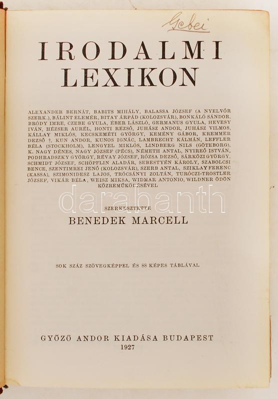 Benedek Marcell (szerk.): Irodalmi lexikon. Budapest, 1927, Győző Ando... https://www.darabanth.com/de/236-Fernauktion/236.0/Andere-Sammelgebiete/Bucher-Sonstige-Raritaten~400040/Benedek-Marcell-szerk-Irodalmi-lexikon-Budapest-1927-Gyozo-Andor-Aranyozott-kiadoi-egesz~II980295