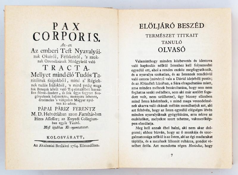 Pápai Páriz Ferenc: Pax Corporis. Bp., 1984, Magvető Könyvkiadó. Kiadó... https://www.darabanth.com/de/236-Fernauktion/236.0/Andere-Sammelgebiete/Bucher-Sonstige-Raritaten~400040/Papai-Pariz-Ferenc-Pax-Corporis-Bp-1984-Magveto-Konyvkiado-Kiadoi-kartonalt-kotes-mC5~II1083564