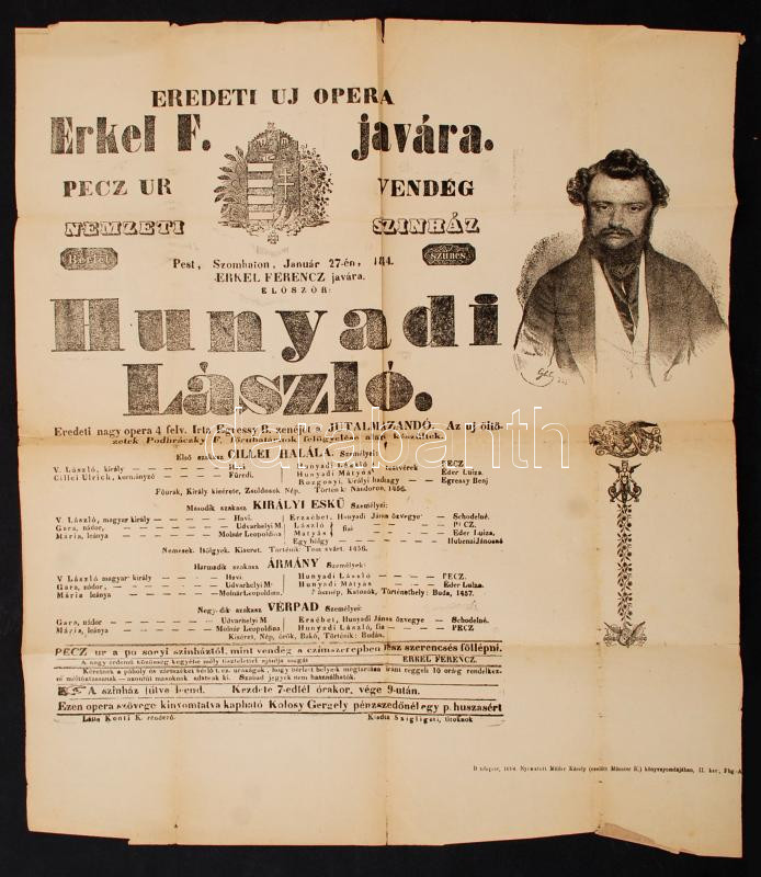 1894 Erkel Ferenc Hunyadi László c. operája 1844-es ősbemutatójának pl... https://www.darabanth.com/de/236-Fernauktion/236.0/Andere-Sammelgebiete/Drucksachen~400007/1894-Erkel-Ferenc-Hunyadi-Laszlo-c-operaja-1844-es-osbemutatojanak-plakatja-reprint-44x52-cm~II1065488