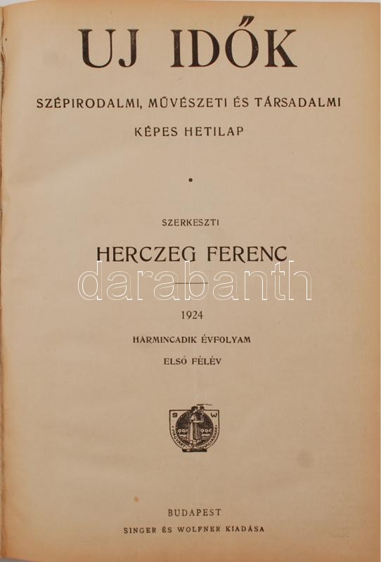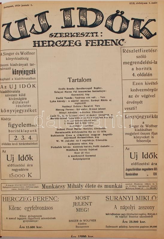 1903 Uj idők. Szépirodalmi művészeti és társadalmi képes hetilap. Szer... https://www.darabanth.com/de/236-Fernauktion/236.0/Andere-Sammelgebiete/Drucksachen~400007/1903-Uj-idok-Szepirodalmi-muveszeti-es-tarsadalmi-kepes-hetilap-Szerkeszti-Herczeg-Ferenc~II1050663
