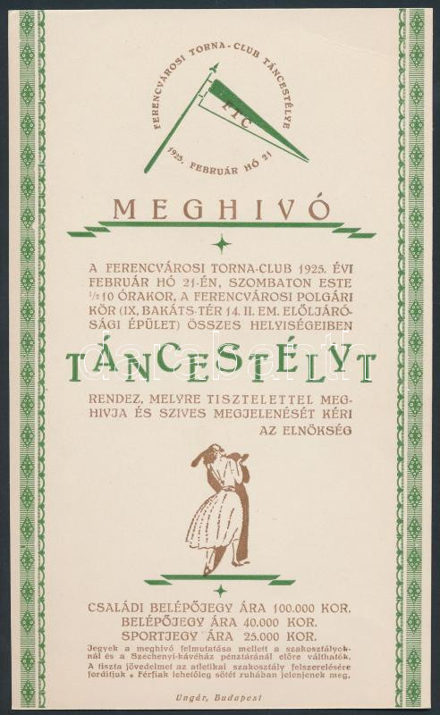 1925 FTC táncestélyi meghívó, eredeti borítékban https://www.darabanth.com/de/236-Fernauktion/236.0/Andere-Sammelgebiete/Drucksachen~400007/1925-FTC-tancestelyi-meghivo-eredeti-boritekban~II1089487