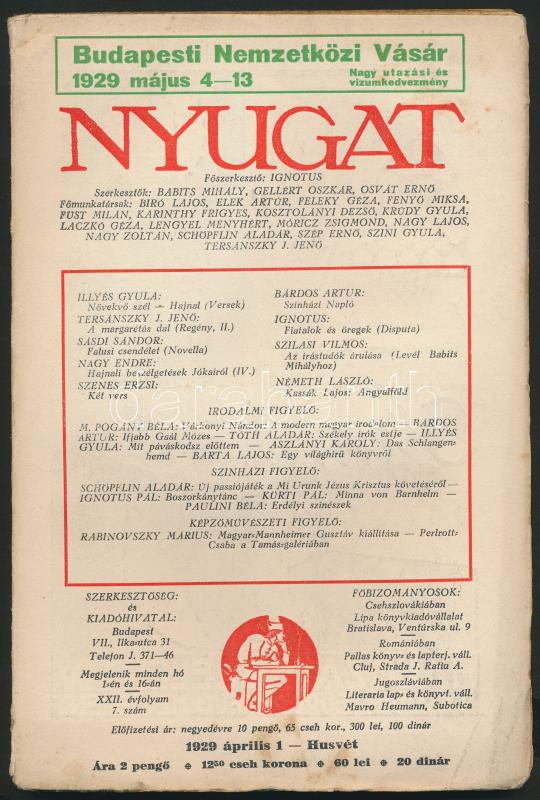 1929 A Nyugat című folyóirat XXII. évfolyamának 7. száma, benne Illyés... https://www.darabanth.com/de/236-Fernauktion/236.0/Andere-Sammelgebiete/Drucksachen~400007/1929-A-Nyugat-cimu-folyoirat-XXII-evfolyamanak-7-szama-benne-Illyes-Gyula-Tersanszky-Jen~II1048091