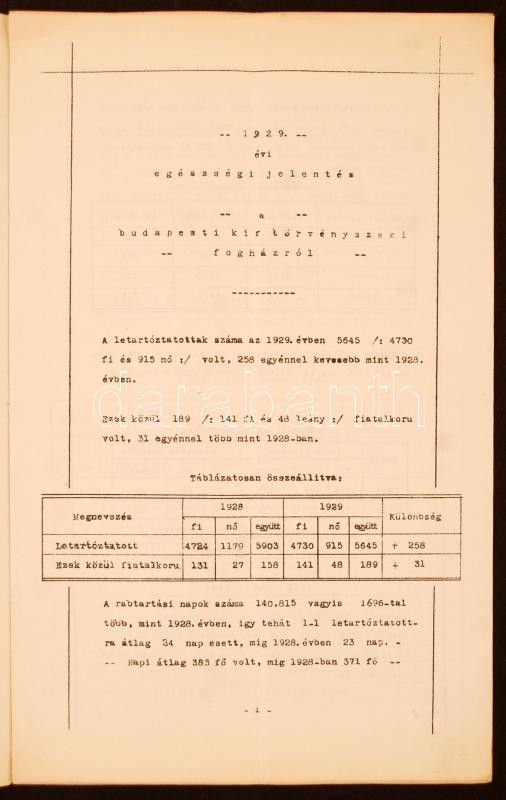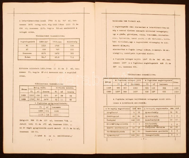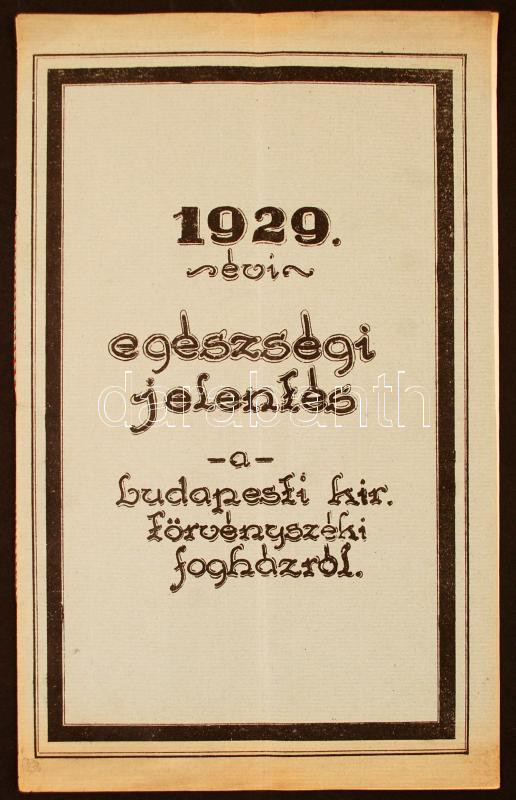1929 Egészségi jelentés a budapesti kir. törvényszéki fogházról, táblá... https://www.darabanth.com/de/236-Fernauktion/236.0/Andere-Sammelgebiete/Drucksachen~400007/1929-Egeszsegi-jelentes-a-budapesti-kir-torvenyszeki-foghazrol-tablazatokkal-reszletes~II1087571