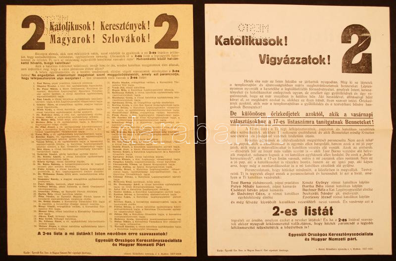 1937 Kassa, Az Egyesült Országos Keresztényszocialista és Magyar Nemze... https://www.darabanth.com/de/236-Fernauktion/236.0/Andere-Sammelgebiete/Drucksachen~400007/1937-Kassa-Az-Egyesult-Orszagos-Keresztenyszocialista-es-Magyar-Nemzeti-Part-es-a-Maxon-fugg~II1089471
