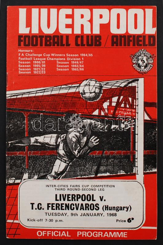 1968 Liverpool - FTC (Ferencváros) Inter Cities Kupa football mérkőzés... https://www.darabanth.com/de/236-Fernauktion/236.0/Andere-Sammelgebiete/Drucksachen~400007/1968-Liverpool--FTC-Ferencvaros-Inter-Cities-Kupa-football-merkozes-meccsfuzete-Football-m~II1081194