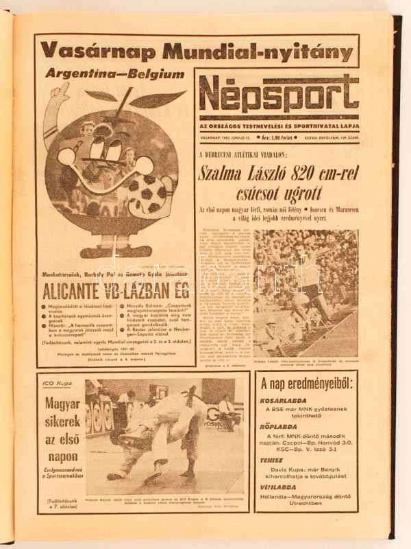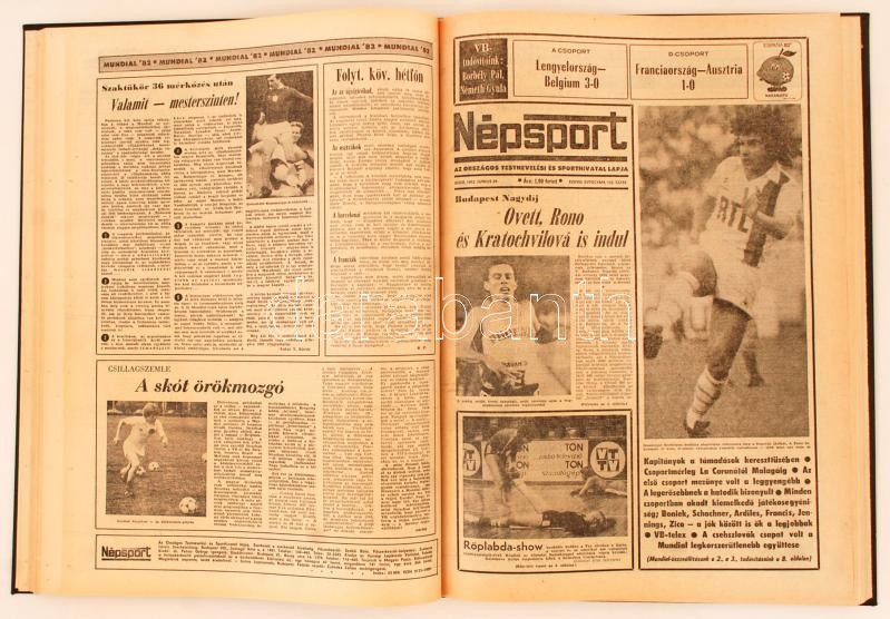 Beschreibung: 1982 A Népsport, Az Országos Testnevelési és Sporthivatal Lapjának számai a futball világbajnokság híreivel könyvbe kötve