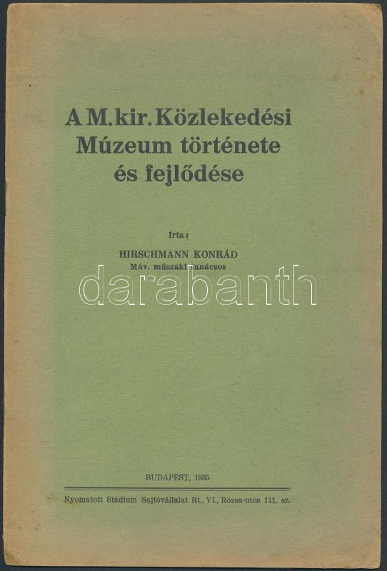 Hirschmann Konrád: A M. kir. Közlekedési Múzeum története és fejlődése... https://www.darabanth.com/de/236-Fernauktion/236.0/Andere-Sammelgebiete/Drucksachen~400007/Hirschmann-Konrad-A-M-kir-Kozlekedesi-Muzeum-tortenete-es-fejlodese-Bp-1935-Stadium~II1084402