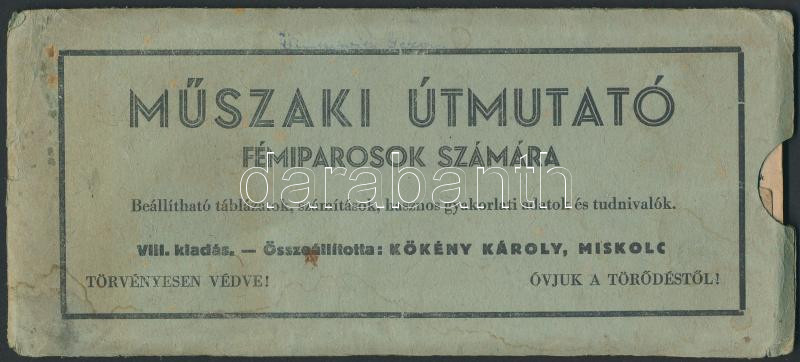 Műszaki útmutató fémiparosok számára, beállítható táblázatok, számítás... https://www.darabanth.com/de/236-Fernauktion/236.0/Andere-Sammelgebiete/Drucksachen~400007/Muszaki-utmutato-femiparosok-szamara-beallithato-tablazatok-szamitasok-hasznos-gyak~II1082896