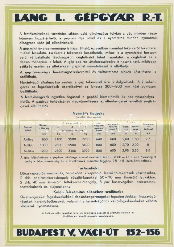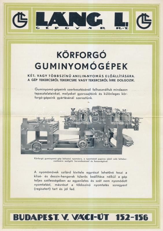 cca 1930-1940 Láng L. Gépgyár Rt. körforgó guminyomógépének szórólapja... https://www.darabanth.com/de/236-Fernauktion/236.0/Andere-Sammelgebiete/Drucksachen~400007/cca-1930-1940-Lang-L-Gepgyar-Rt-korforgo-guminyomogepenek-szorolapja-keppel-illusztral~II1087497