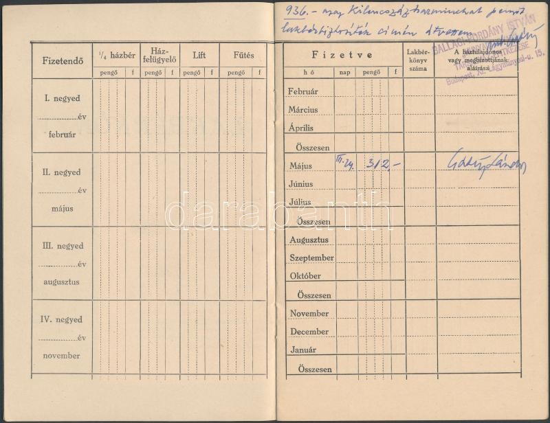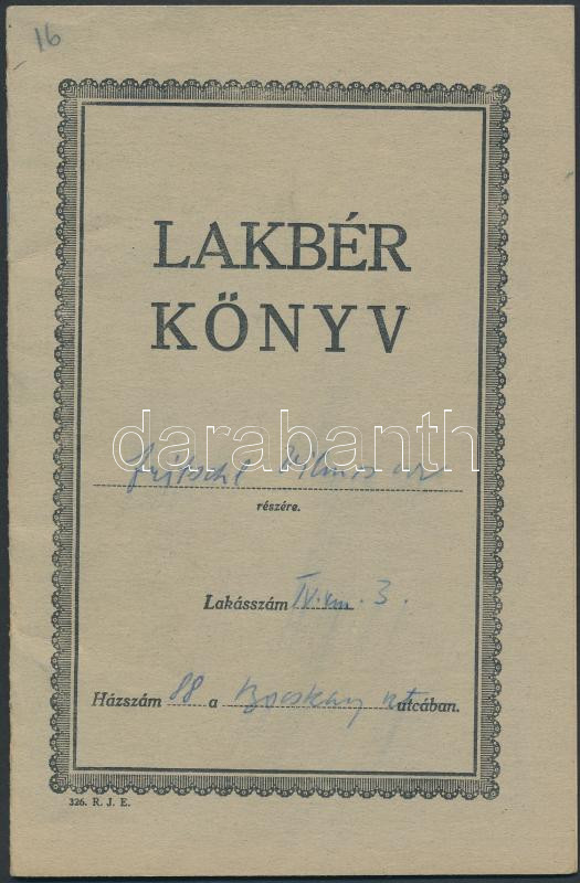 Beschreibung: cca 1930-40 Lakbérkönyv, Bocskay u. 88.