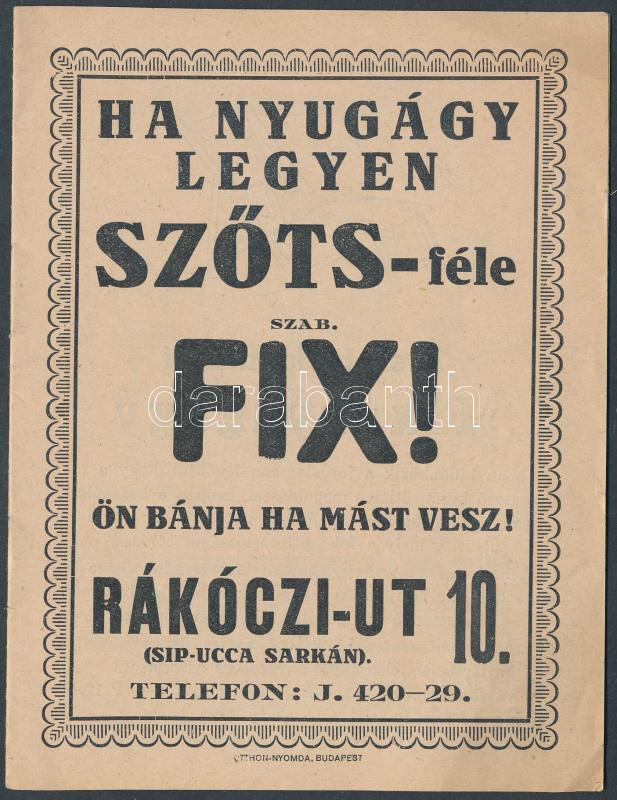 cca 1930 "Ha nyugágy legyen Szőts-féle!" Szőts-féle bútor és nyugágy p... https://www.darabanth.com/de/236-Fernauktion/236.0/Andere-Sammelgebiete/Drucksachen~400007/cca-1930-Ha-nyugagy-legyen-Szots-fele-Szots-fele-butor-es-nyugagy-prospektus~II1087518