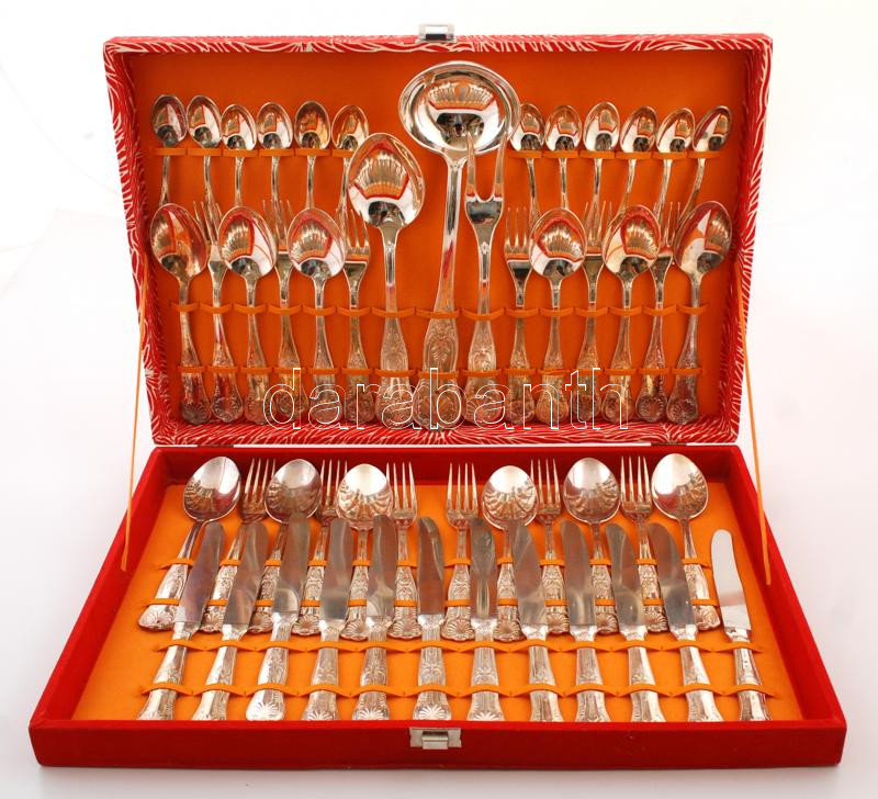 Beschreibung: 12 személyes fém evőeszköz készlet, jelzett, eredeti dobozában, összesen: 51 db