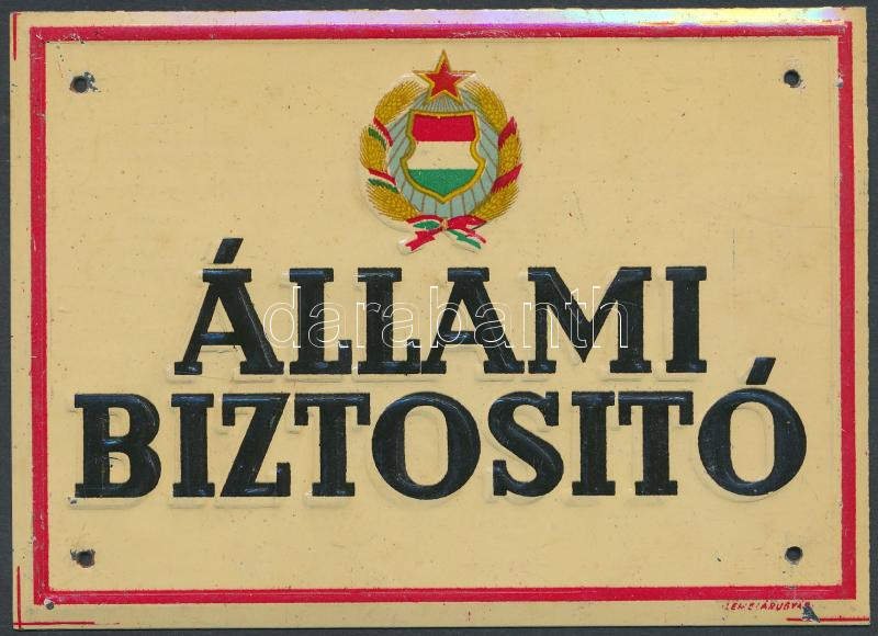 Az Állami Biztosító Lemezárugyárban készült fém táblája, 14x10 cm https://www.darabanth.com/de/236-Fernauktion/236.0/Andere-Sammelgebiete/Flohmarkt~400022/Az-Allami-Biztosito-Lemezarugyarban-keszult-fem-tablaja-14x10-cm~II1087714