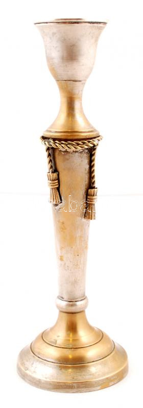 Beschreibung: Nagyméretű, díszes fém gyertyatartó, m: 25 cm