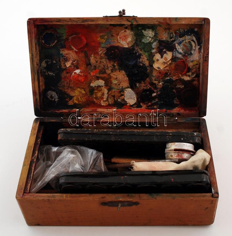 Régi fa doboz, kis hibákkal, benne, festéshez használt kellékekkel, 21... https://www.darabanth.com/de/236-Fernauktion/236.0/Andere-Sammelgebiete/Flohmarkt~400022/Regi-fa-doboz-kis-hibakkal-benne-festeshez-hasznalt-kellekekkel-21C39712-cm~II1085979