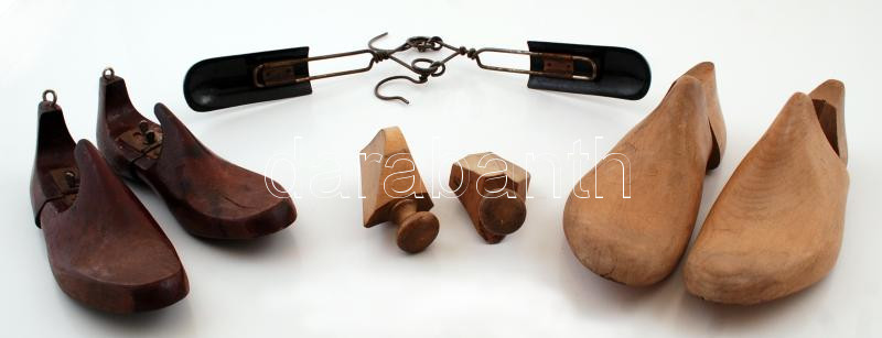 Beschreibung: Régi sámfák, 2 pár, ebből az egyik 3db-os+ régi vállfa, jelzett, fém