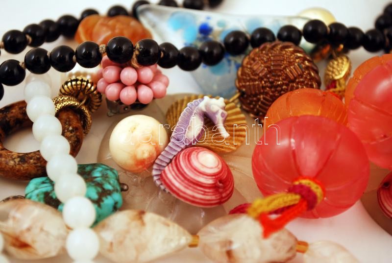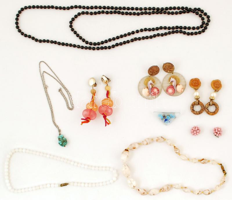 Beschreibung: Vegyes bizsu tétel: nyakláncok, fülbevalók, kitűző