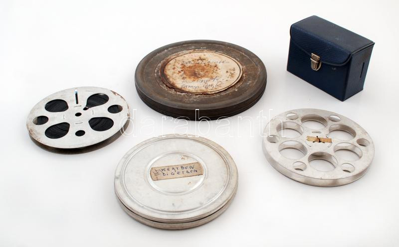 Beschreibung: cca 1940 4 db ismeretlen 8 mm film, kis doboz hiányos vágó doboz