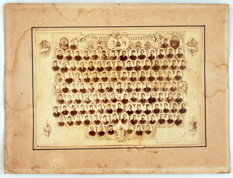 1887 Selmecbánya, Az 1886-1887-ik évi selmeci valetánsok tablóképe(erdészek és bányászok), Baker Alajos fényképe, kartonra kasírozott fotó, 25x33 cm /