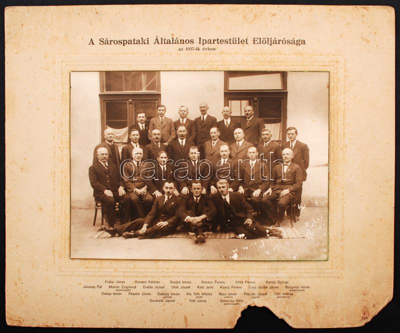 1937 A Sárospataki Ipartestület előljárósága, csoportkép a nevek feltü... https://www.darabanth.com/de/236-Fernauktion/236.0/Andere-Sammelgebiete/Foto~400036/1937-A-Sarospataki-Ipartestulet-eloljarosaga-csoportkep-a-nevek-feltuntetesevel-a-kep-C3~II1085811