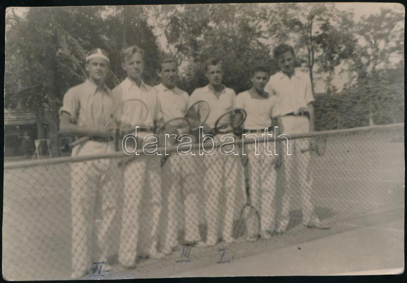 Beschreibung: 1937. szeptember 5. Hajdúböszörményi teniszjátékosok a Hajdú-héten, feliratozott fotó, 12x17 cm
