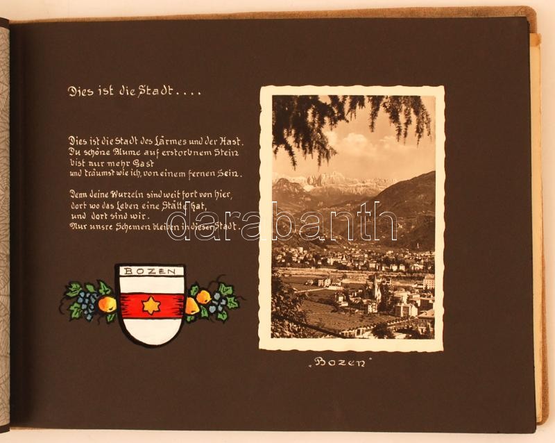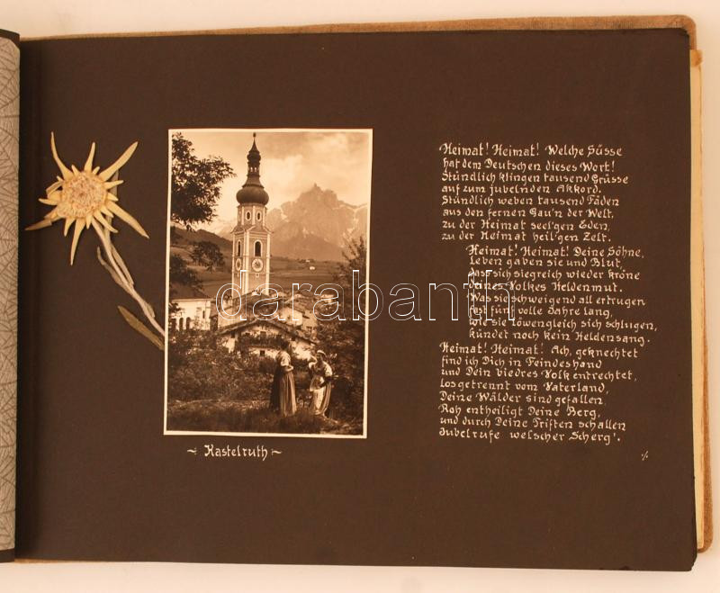 1939 Mein heimatland Südtirol. Házi készítésű album 42 db képeslappal ... https://www.darabanth.com/de/236-Fernauktion/236.0/Andere-Sammelgebiete/Foto~400036/1939-Mein-heimatland-Sudtirol-Hazi-keszitesu-album-42-db-kepeslappal-es-fotoval-es-egy-ny~II1088471