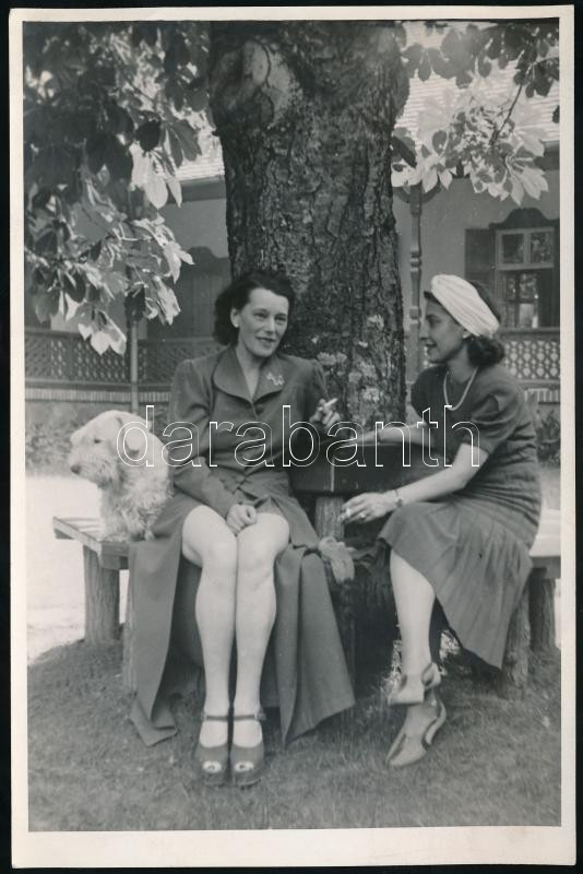 Beschreibung: 1941. nyara, Látogatás Bajor Gizinél Balatonföldváron, feliratozott fotó, 18x12 cm