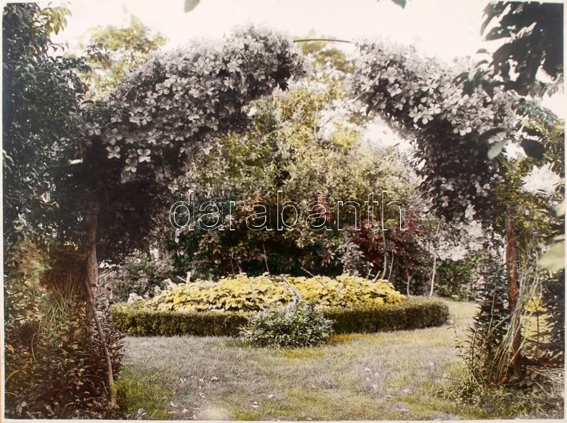 Beschreibung: 1943 Fridrich (Szentes): Egy szentesi kert színezett fotója, 17x23 cm, karton 29x34 cm
