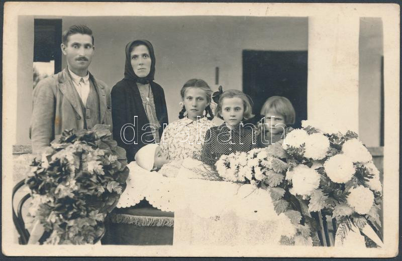 1943 Kisgyermek ravatalozása, fotólap, hátoldalon feliratozva, 14x9 cm https://www.darabanth.com/de/236-Fernauktion/236.0/Andere-Sammelgebiete/Foto~400036/1943-Kisgyermek-ravatalozasa-fotolap-hatoldalon-feliratozva-14x9-cm~II1088378