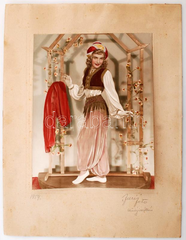 1959 Kisújszállás, Jeney fotó egy törökbugyogós leánykáról, színezett ... https://www.darabanth.com/de/236-Fernauktion/236.0/Andere-Sammelgebiete/Foto~400036/1959-Kisujszallas-Jeney-foto-egy-torokbugyogos-leanykarol-szinezett-foto-29-5x22-5-cm~II1085815