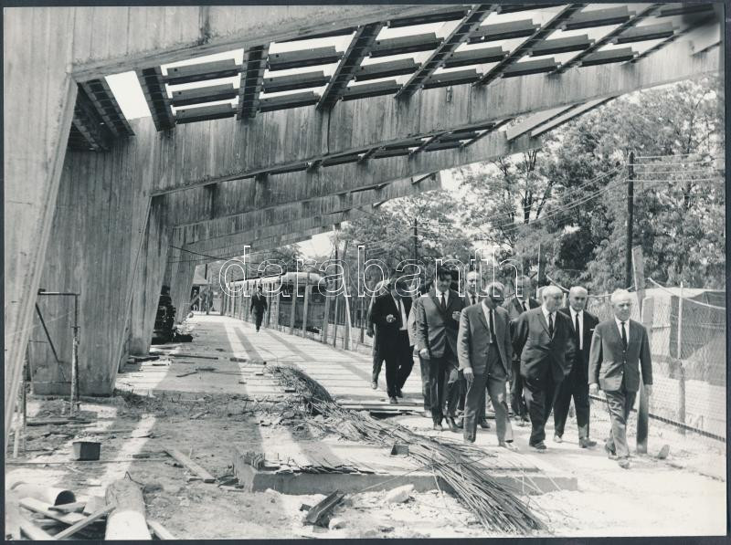 Beschreibung: 1969. május 29. Budapest, felszíni metróállomás építését szemlézi dr. Csanády György közlekedési és postaügyi miniszter, 24x18 cm
