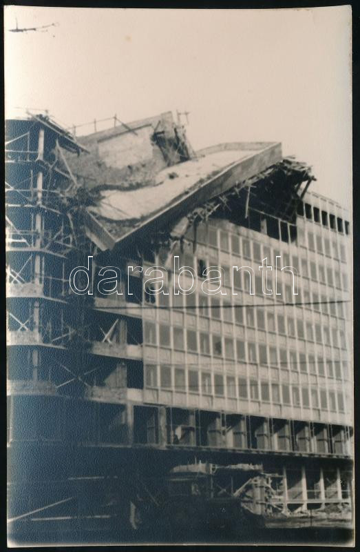 Beschreibung: 1973 Budapest, az épülő MOL székház felső szintjének beomlása, 14x9 cm
