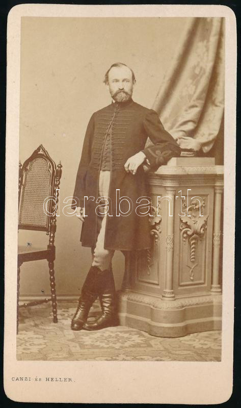 cca 1875 Halbauer Rezső a főváros nagy csemege kereskedő családjának tagja, egyike Budapest virilistáinak, azaz legnagyobb adófizetőinek, egész alakos fénykép vizitkártya méretben Canzi és Heller műterméből, feliratozva, 10,5x6 cm