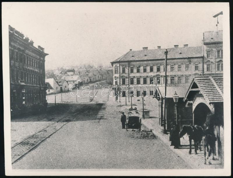 Beschreibung: cca 1880 Budapest, lóvasúti pótlovas állomás a Margit híd budai hídfőjénél, korabeli kép későbbi másolata, 9x12 cm