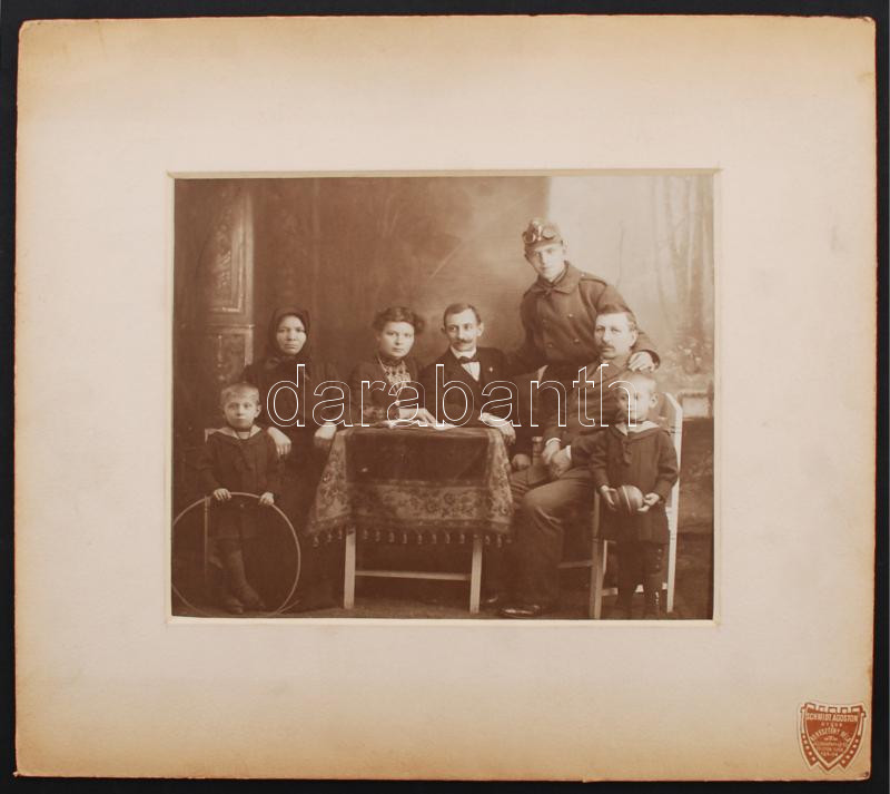 Beschreibung: cca 1914 Keresztély Béla: A katona fiú hazatért, családi fotó, 17x20 cm, karton 29x32 cm