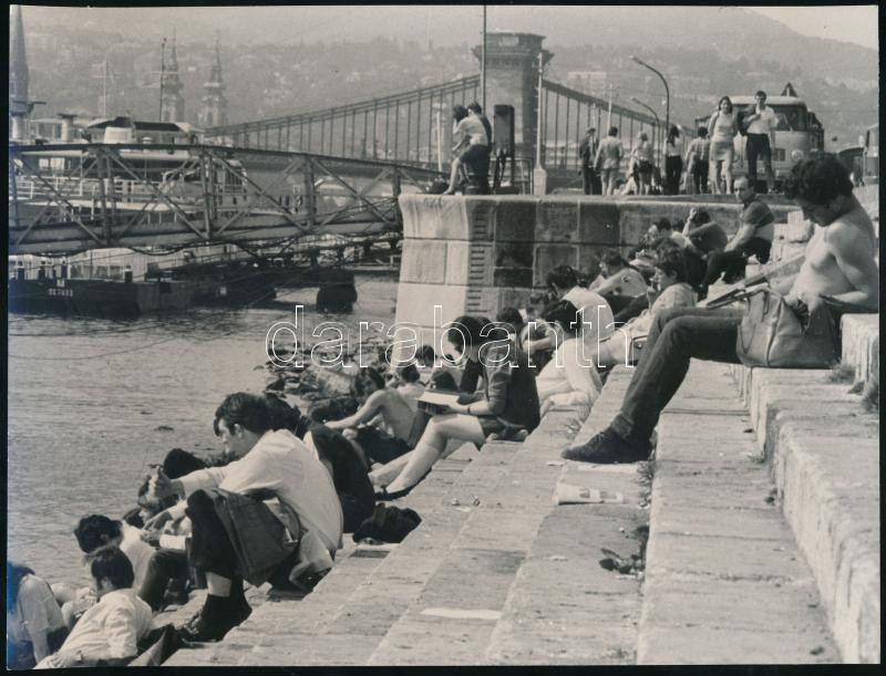 Beschreibung: cca 1975 Urbán Tamás: Élet a Duna partján, pecséttel jelzett riportkép a Magyar Ifjúságnak, 16x21 cm