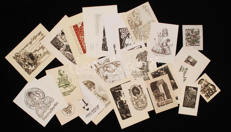 Beschreibung: 30 különböző érdekes Ex libris, meghívó és kisgrafika, több közülük jelzett