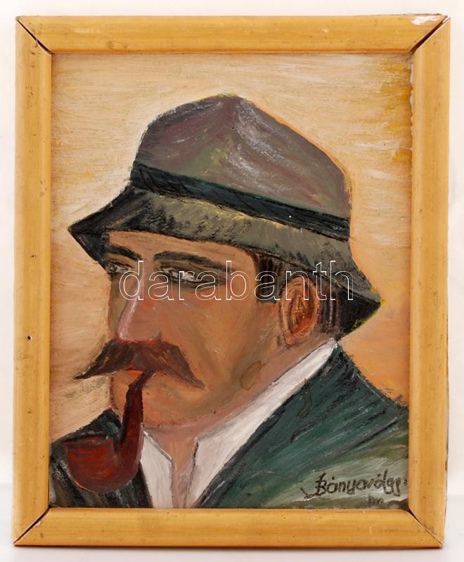 Beschreibung: Bányavölgyi jelzéssel: Pipázó. Olaj, farost, keretben, 24×19 cm
