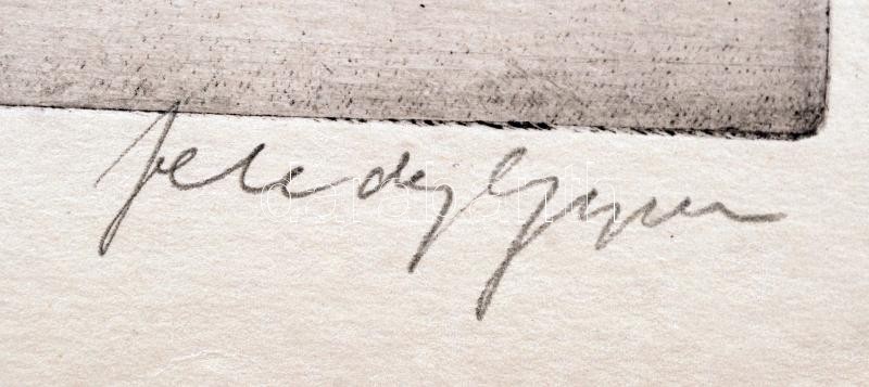 Beschreibung: Feledy Gyula (1928-2010): A föld azé, aki megműveli. Rézkarc, papír, jelzett, 19×29 cm