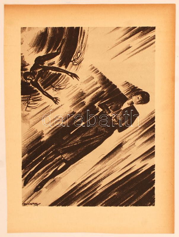 Beschreibung: Ruzicskay György (1896-1993): Segítség! Algrafia, papír, jelzett az algrafián, 24,5×18,5 cm