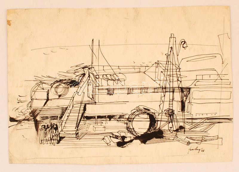 Szalay jelzéssel: Kikötött a hajó. Tus, papír, 20×29 cm https://www.darabanth.com/de/236-Fernauktion/236.0/Andere-Sammelgebiete/Gemalde-und-Grafiken~600324/Szalay-jelzessel-Kikotott-a-hajo-Tus-papir-20C39729-cm~II1086980
